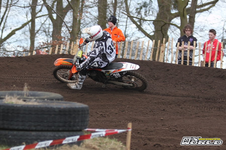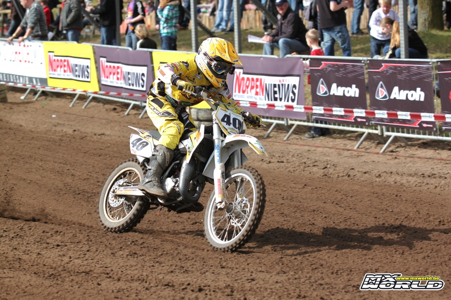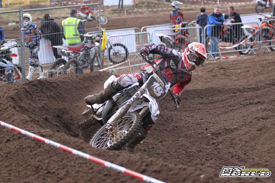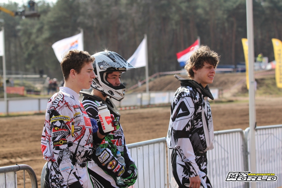 Op twee jongens na was iedereen klaar om de wedstrijd aan te vatten. Jasper van der Mierden en Sauro Deleau krijgen dit weekend opnieuw de kans. Ook voor Dietger Damiaens en Bryan Engelen was het een eerste reeks om snel te vergeten want beide heren kwamen niet tot scoren. Beste Belg werd een sterk rijdende Nestaan JM KTM racing rijder Stijn Hofman die op een 8e plaats kon finishen. Nathan Renkens werd 11e, Ian Bauters kon als 16e binnen komen en Cedric Grobben kon het laatste puntje in de wacht slepen.