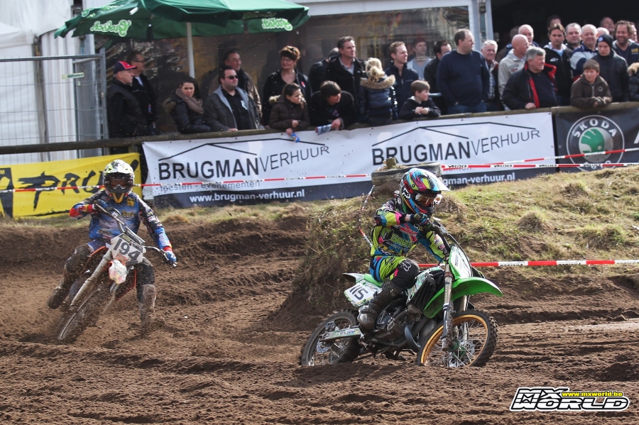 Na de pauze was het circuit herschapen in een erg zware baan voor de jeugdrijders om er hun 20 minuten wedstrijd te betwisten. Deze keer was het Cyril Genot die de eer het hoogst wist te houden en als 5e over de finish kwam. Jodri van Mieghem 10e en Thomas van Erum 15e waren de andere gelukkigen die punten wisten te scoren. tim Louis en Yannick Vertommen vielen net buiten de punten. Voor de jongste rijder van het pak was het minder leuk, Jarni Kooij kwam als 10e door in de openingsronde en kon erg goed aanklampen. Een valpartij op de zware baan gooide Jarni terug tot plaats 31, maar hij gaf niet op en vocht zich terug naar plaats 25. Jammer genoeg geen punten voor de Kawasaki rijder, maar deze laten zeker niet lang meer op zich wachten voor de elf jarige. Ook Michael Buitendijk kwam niet tot scoren in deze reeks maar kon terugblikken op een sterke race.
